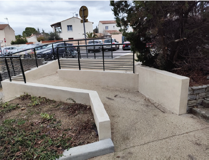 Des cheminements piétons sécurisés : trottoirs élargis, feux sonores, rampes d’accès, abaissés de trottoirs, réfection sol place de la Fontaine, etc.