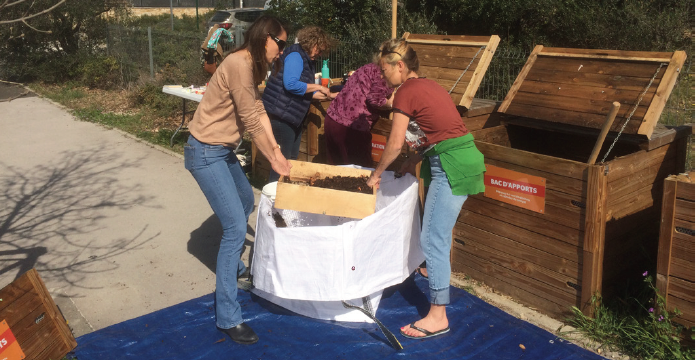 • Installation de composteurs collectifs pour réduire les déchets et leur transport et les réutiliser, achat d’un broyeur de végétaux